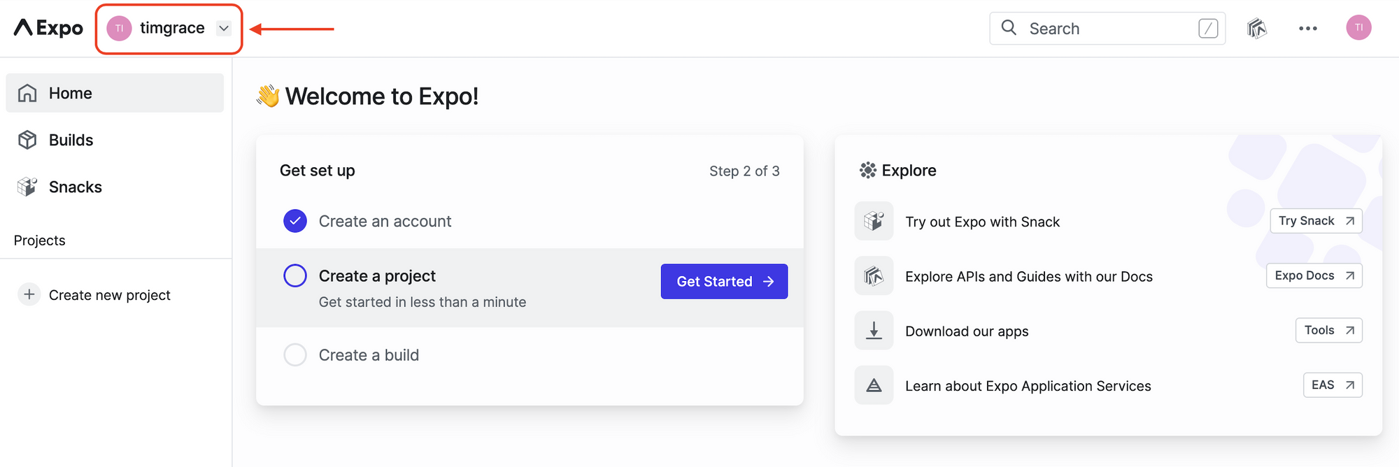 Once you've created your Expo account, add that account name in your Google Play Store Settings in Project Settings.